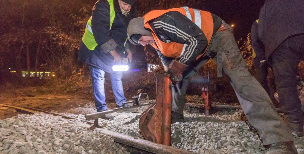 В разных районах Днепра продолжаются капитальные ремонты трамвайных путей. Уже вторую ночь коммунальщики работают на участке под Амурским мостом, который считается одним из аварийных. Пятнадцать лет назад здесь вложили рельсы и шпалы, которые уже были в использовании. Участок маршрута быстро пришел в негодность, ведь шпалы прогнили.