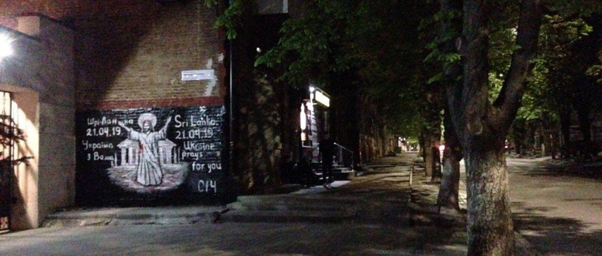 Вчера, 21 апреля, мир шокировала страшная новость о теракте на Шри-Ланке, который унес жизни 200 человек. Эта новость побудила группу активистов из Днепра откликнуться и нарисовать новое граффити в центре Днепра, на улице Владимира Вернадского.