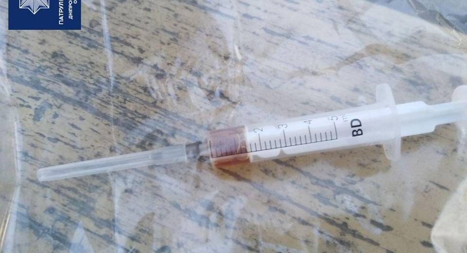 Цього ж дня близько 16 години, під час патрулювання в Самарському районі поліцейські побачили у дворі багатоповерхівки громадянина, який палив цигарки на дитячому майданчику. Правоохоронці підійшли до чоловіка поспілкуватись. Останній помітно занервував. Патрульні провели поверхневу перевірку під час якої виявили у особи шприц з речовиною, схожою на наркотичну.