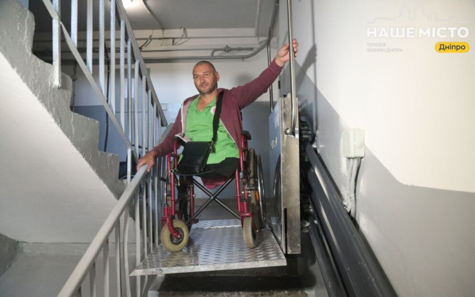 — Із проханням встановити пандус пів року тому до міського голови та до мене як до депутата звернувся Олександр Васильович, який під час бойового завдання отримав поранення на Донецькому напрямку і став маломобільним, — розповідає депутат міської ради Сергій Пустовий. — Встановлення відкидного пандуса не вирішувало проблему, оскільки Олександр самостійно не зміг би ним користуватися. І завдяки міському департаменту самоорганізації населення ми звернулися до дніпровського підприємства, яке займається такими підйомниками. Зараз підйомник працює в тестовому режимі, і після врахування зауважень ми встановлюватимемо аналогічні пристрої в інших будинках.