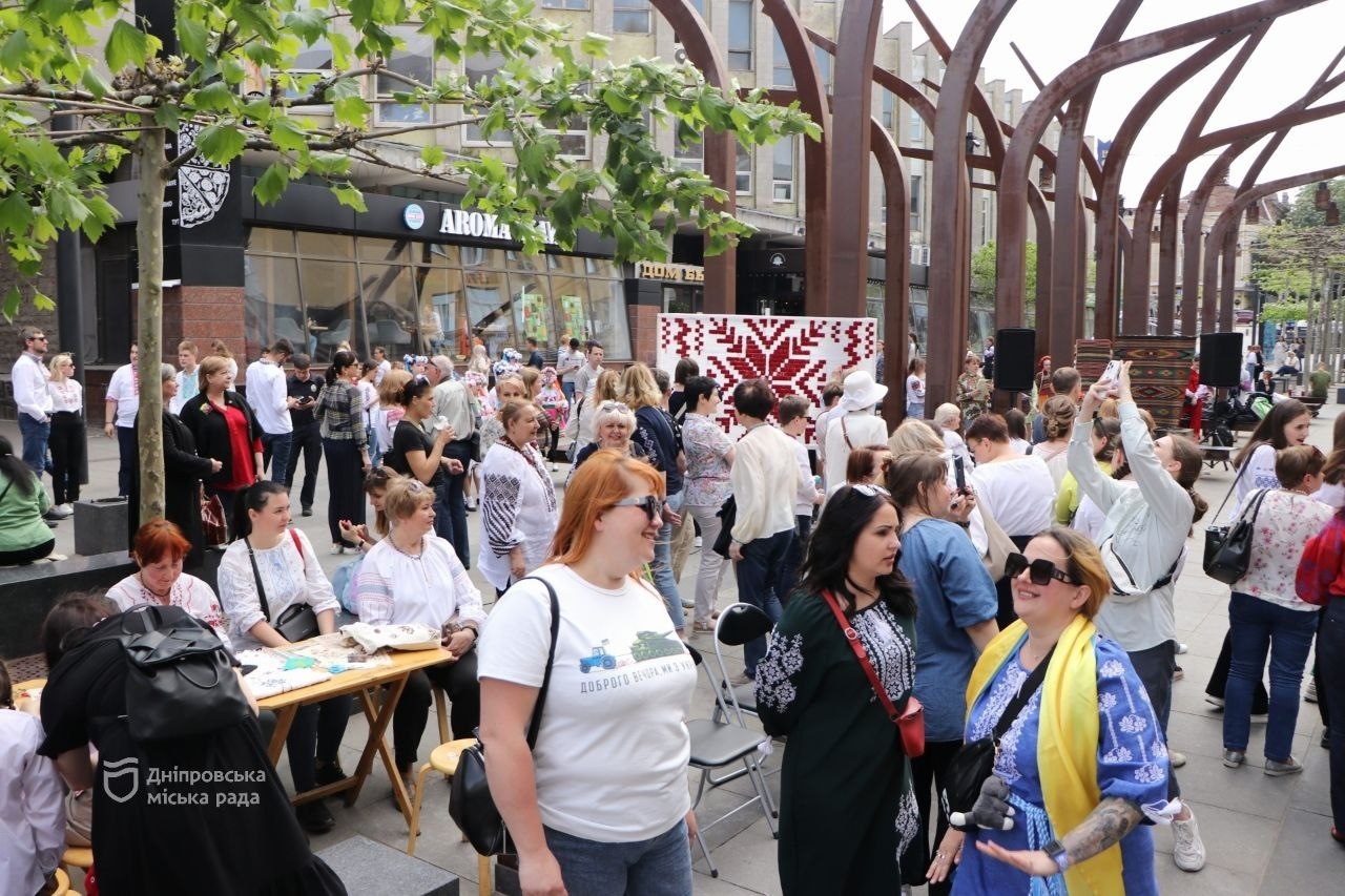 У середмісті Дніпра було влаштовано величезне святкування Дня вишиванки. Гостям свята підготували багато цікавих локацій, включаючи фотозони, театралізовані вистави, вокальні та танцювальні виступи. Для тих, хто бажав навчитись вишивати, був проведений майстер-клас, де всі охочі мали змогу долучитись до створення 12-метрового рушника з назвою “Україна єдина”. Рушник був прикрашений фрагментами вишивок з різних регіонів нашої країни. Також під час святкування було виконано гімн та вшановано пам’ять полеглих захисників України мовчанням.