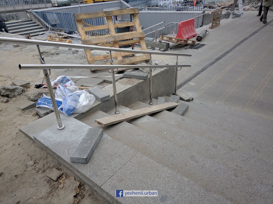 Установлен больших размеров остановочный комплекс, глубокий навес и много. Теперь от остановки троллейбуса до автовокзала нужно переходить через подземный переход, к которому ведут две лестницы. Лестницы оборудованы перилами правильной формы и высоты.
