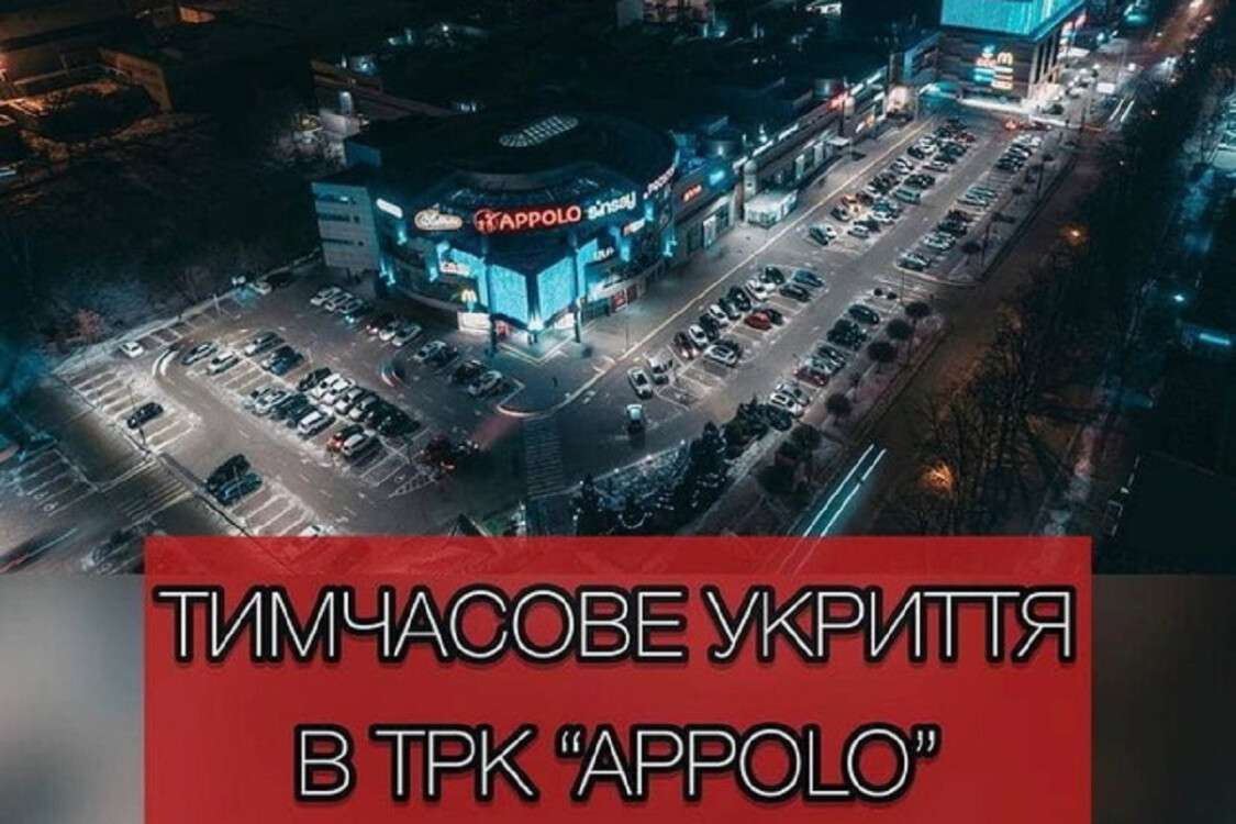 В Днепре в ТРЦ Appolo по адресу улица Титова, 36, появилось укрытие, которое находится на территории внутренней парковки.